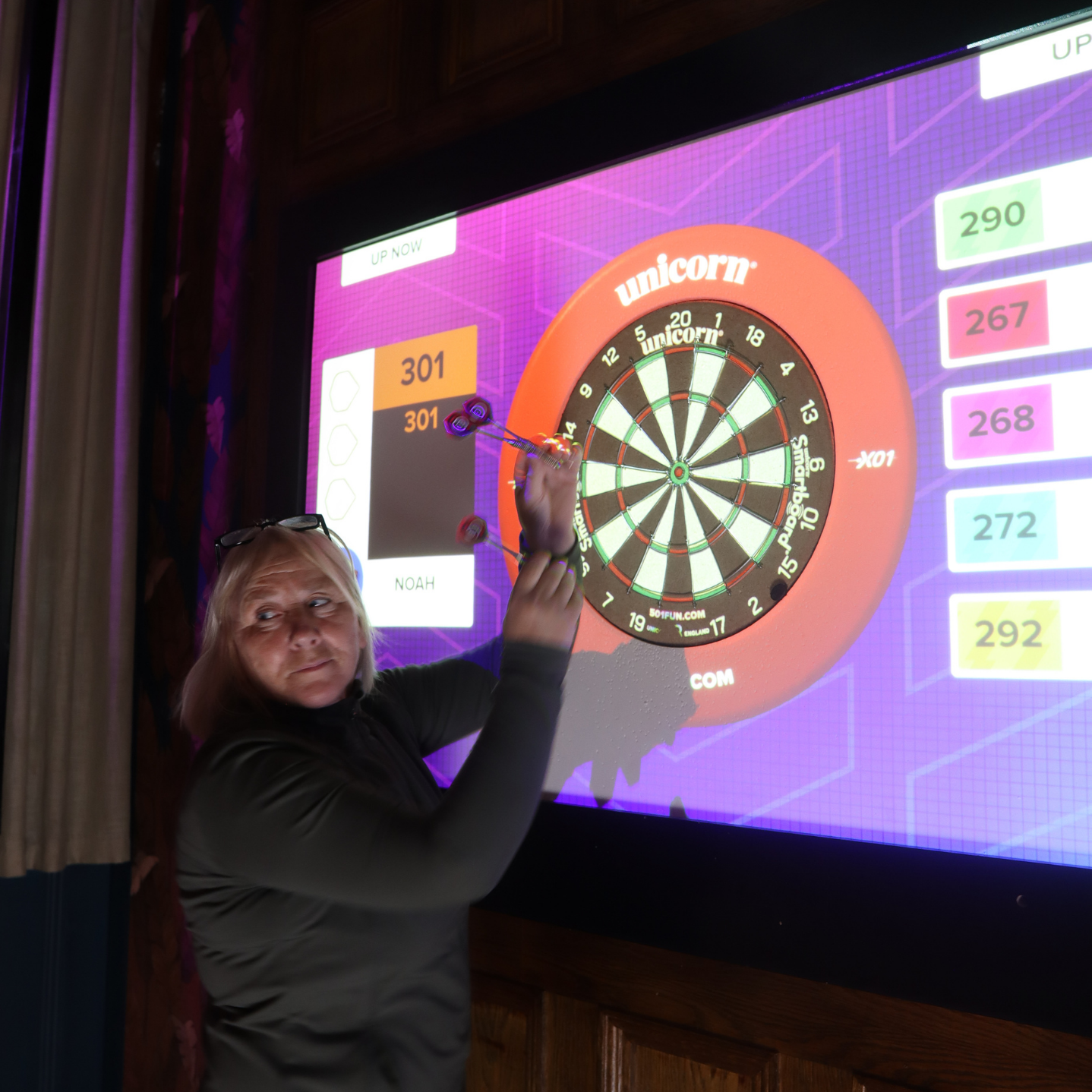 The world’s first and only auto-scoring darts system that projects all targets and scores directly onto the board itself. Our AR Darts deliver instant, automated scoring and rich video game graphics presented onto a big screen.